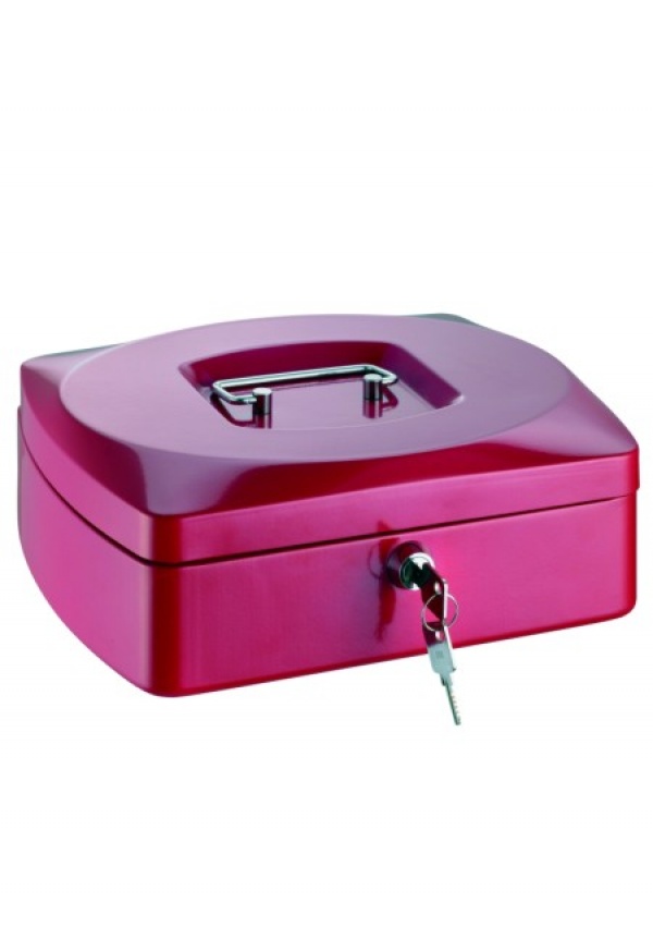 Atraktivní přenosné pokladny, vyrobené z kvalitního ocelového plechu se zaoblenými boky a příjemně tvarovaným víkem. Otočný cylindrický zámek se 2 klíči, plastová vložka s 8 přihrádkami na mince.