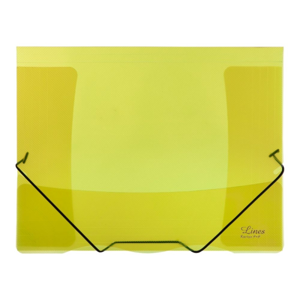 Desky se třemi chlopněmi. Uzavírání pomocí gumičky. Materiál polypropylen, síla 400 mic. Roztažitelný hřbet až 3,0 cm. Kapacita 250 listů. Pro formát A4. Barvy s vysokým leskem. Barva žlutá.