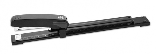 Profesionální spisová sešívačka s dlouhým posuvným ramenem pro formáty od A6 do A2. Raménko 30cm opatřené pravítkem. Robustní konstrukce sešívačky vhodná i pro časté používání. Plastové protiskluzné podložky zabraňují poškození nábytku a zvyšují stabilitu při sešívání. Maximální kapacita 20 listů. Drátky 24/6, 26/6.