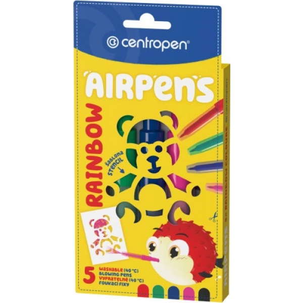 Skvělá kreativní pomůcka díky níž snadno vytvoříte krásné obrázky a nejrůznější barevné kombinace. Kromě rozvíjení výtvarného cítění dětí při práci s foukacími fixy nenásilnou a zábavnou formou provádějí tolik žádoucí dechová cvičení, zlepšující jejich celkový zdravotní stav. Fixy obsahují zdravotně nezávadný, vypratelný inkoust v 5 barevných odstínech a 1 šablonu. Balení 1/12 - číslo za lomítkem udává počet sad v krabici.